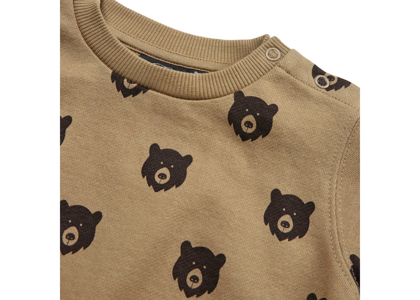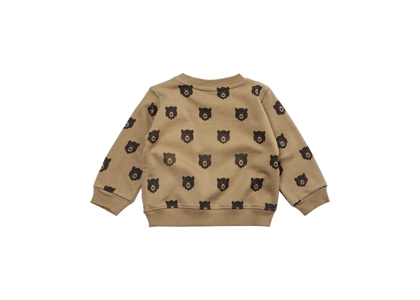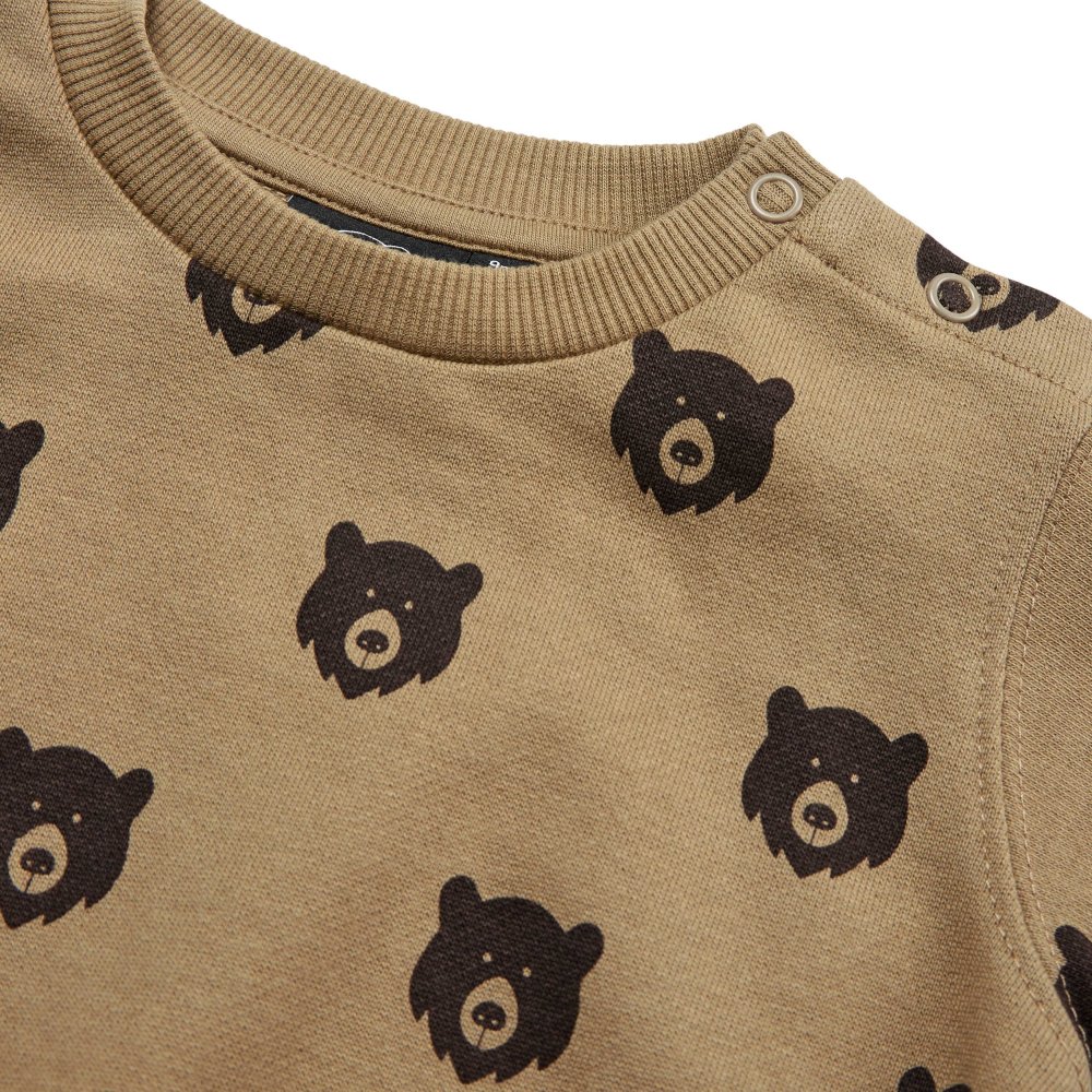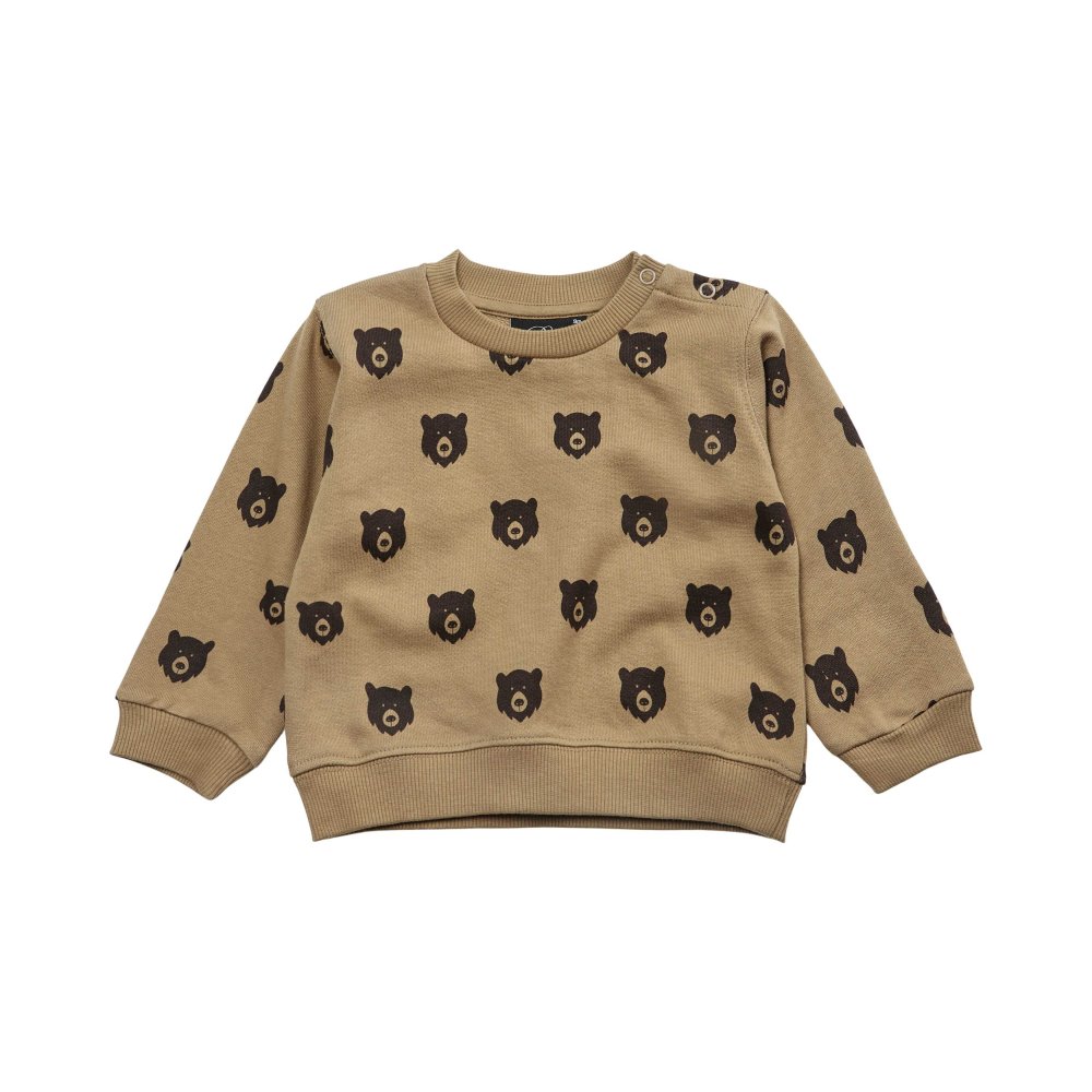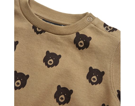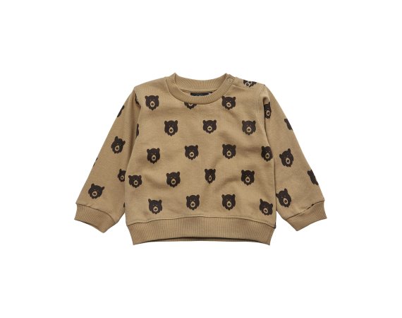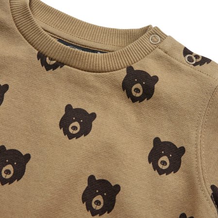 Lækker sweatshirt med bjørneprint.Sweatshirten har ribkanter i alle åbninger og lukkes med trykknapper på skulder.