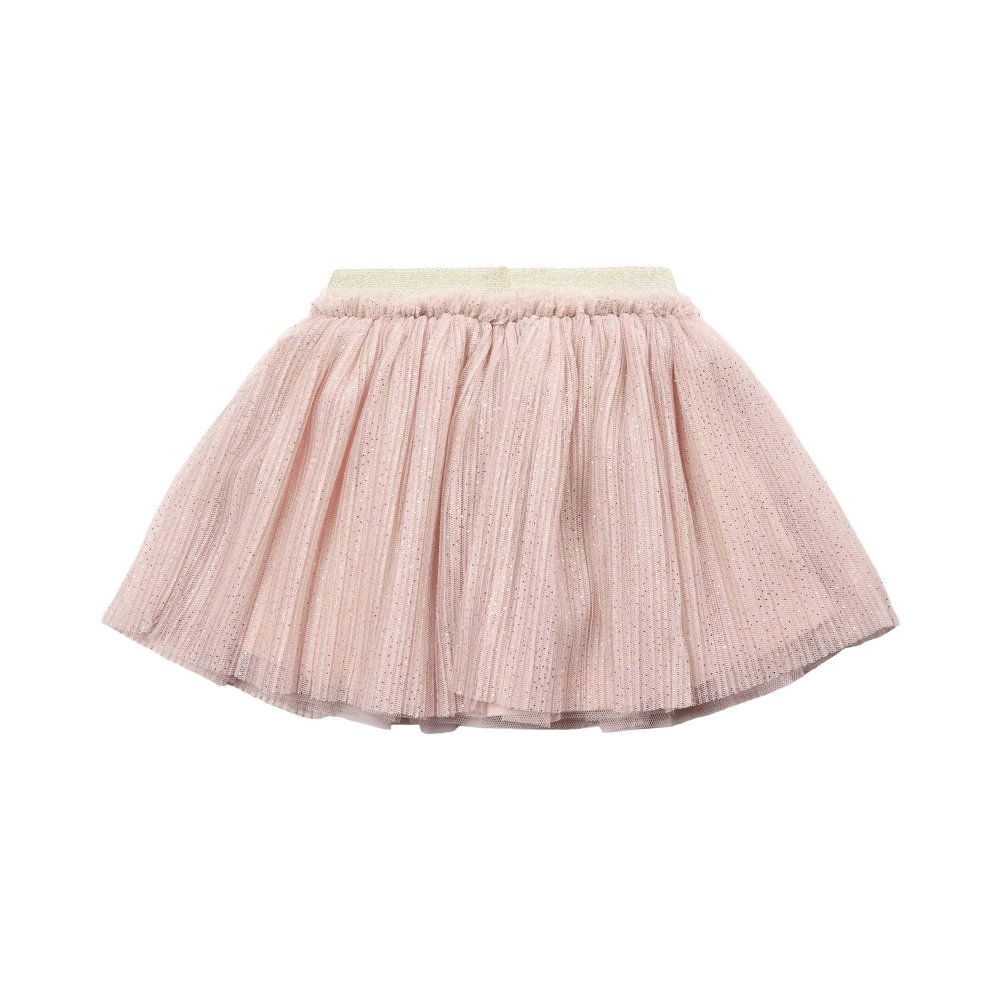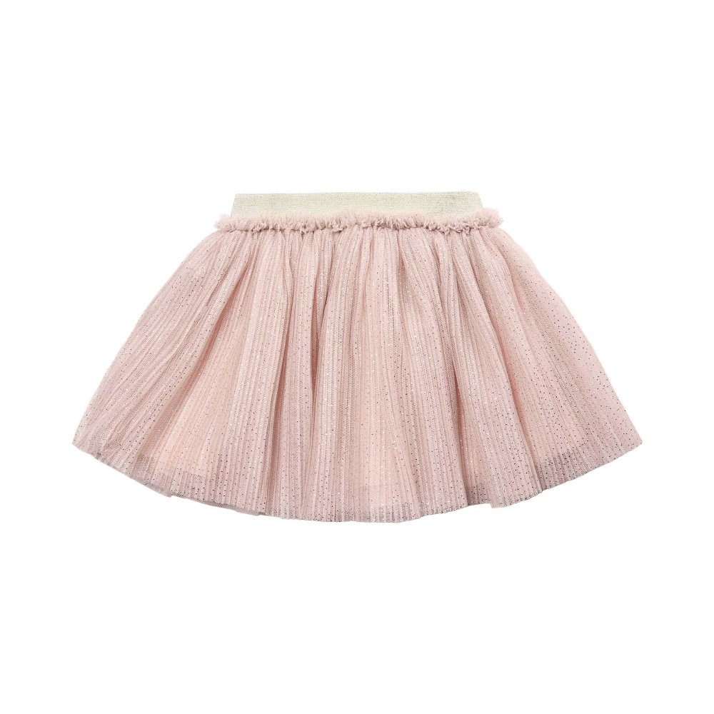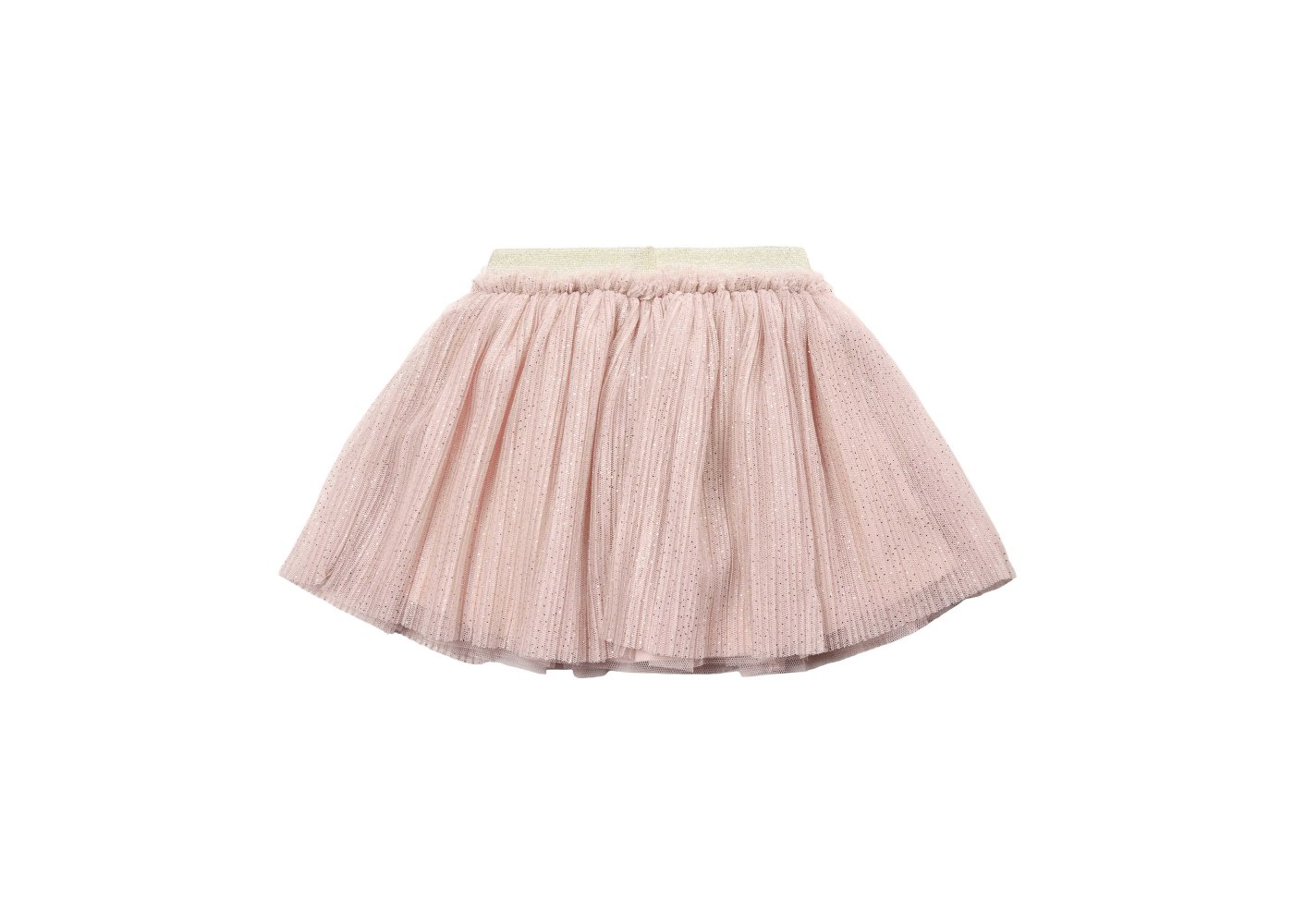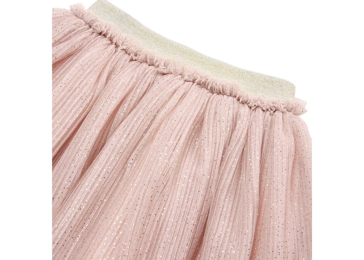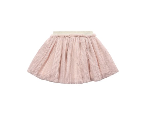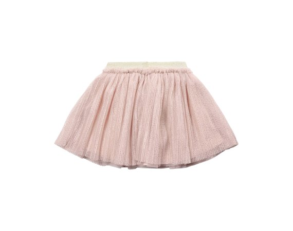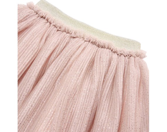 Smuk tyl nederdel med strutskørt og guldglimmer.Nederdelen har en smal elastikkant i taljen, flere lag tyl og et underskørt.