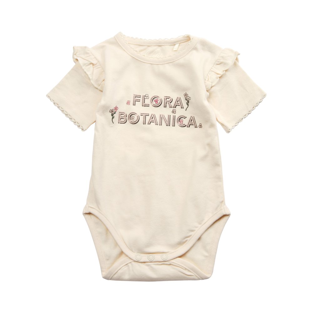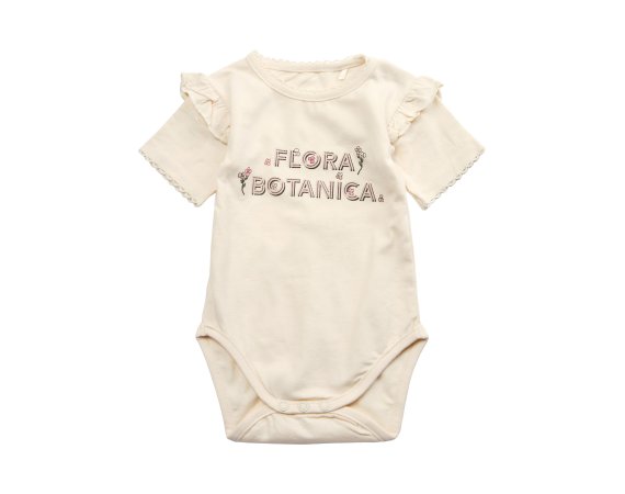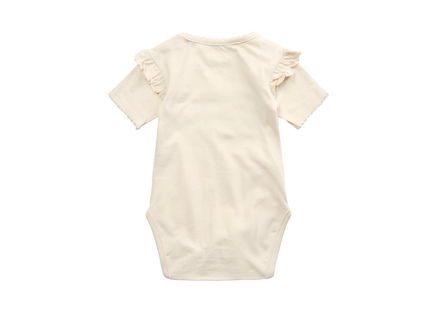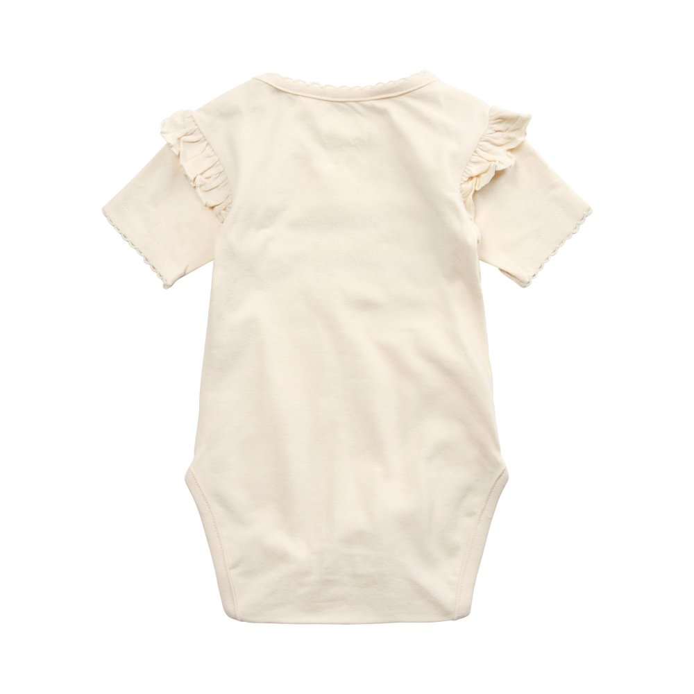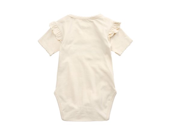 Yndig body i antik hvid fra Petit by Sofie Schnoor.Bodyen har fint broderi og flæser på ærmer og lukkes med trykknapper på skulder og mellem ben.