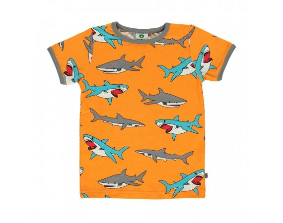 Småfolk Kortærmet T-shirt i Orange m. Hajprint
