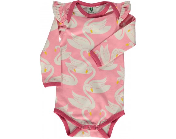 Smart body i blødt økologisk bomuld med all-over print af svanerBodyen har ensfarvet kant ved alle åbninger, kuvertlukning på skuldre og trykknap lukning mellem ben.