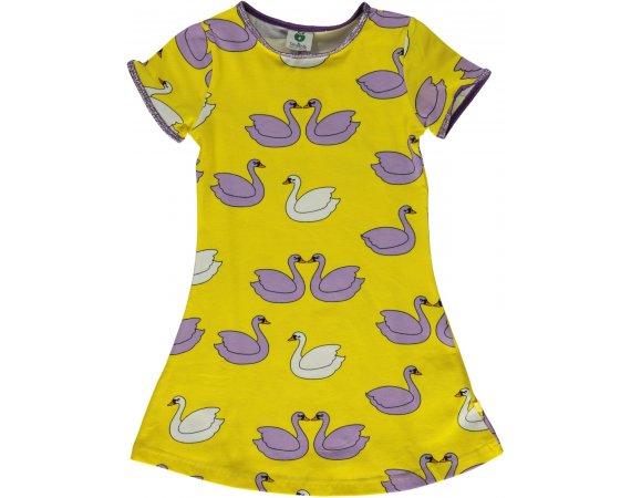 Kjole med vidde i skørt og fast ribkant i halsudskæring og ved ærmer med glimmer.