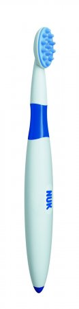 Du kan ikke starte for tidligt med at øve tandbørstning med din baby.NUK træningssæt giver en god begyndelse og introduktion til tandbørstning for din baby og på den gode måde!Tandbørste sættet er med sine sine små bløde og samtidig faste knupper rigtig dejlige for din baby at bide i. Ikke mindst når gummerne begynder at spænde, klø og gøre ondt i forbindelse med, at de første tænder titter frem. Når de første tænder er synlige, kan øve tandbørsterne være med til at sikre, at de små tænder holdes rene fra starten. Trænings sættet er ikke kun brugbart som tandbørste - men er også en lidt anderledes og funktionel bidering til dit barn.