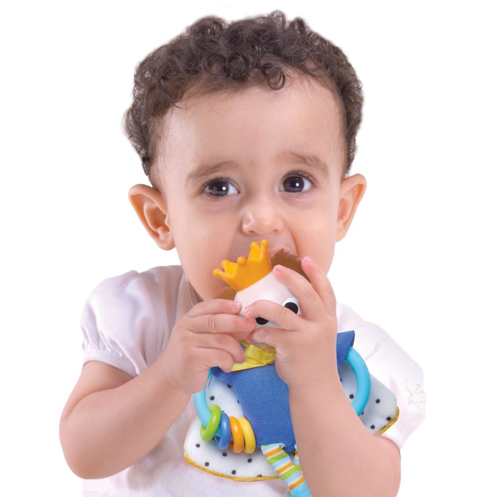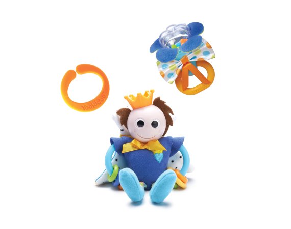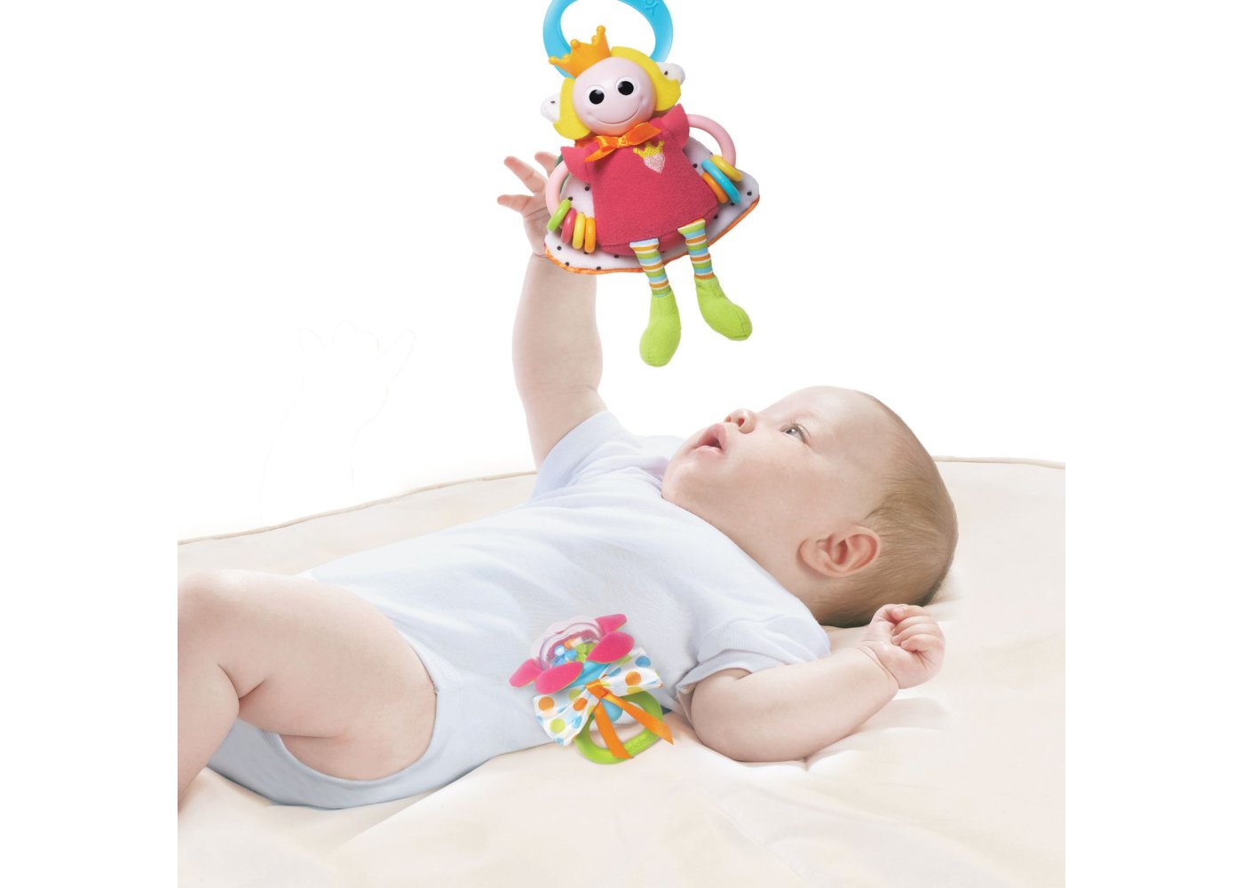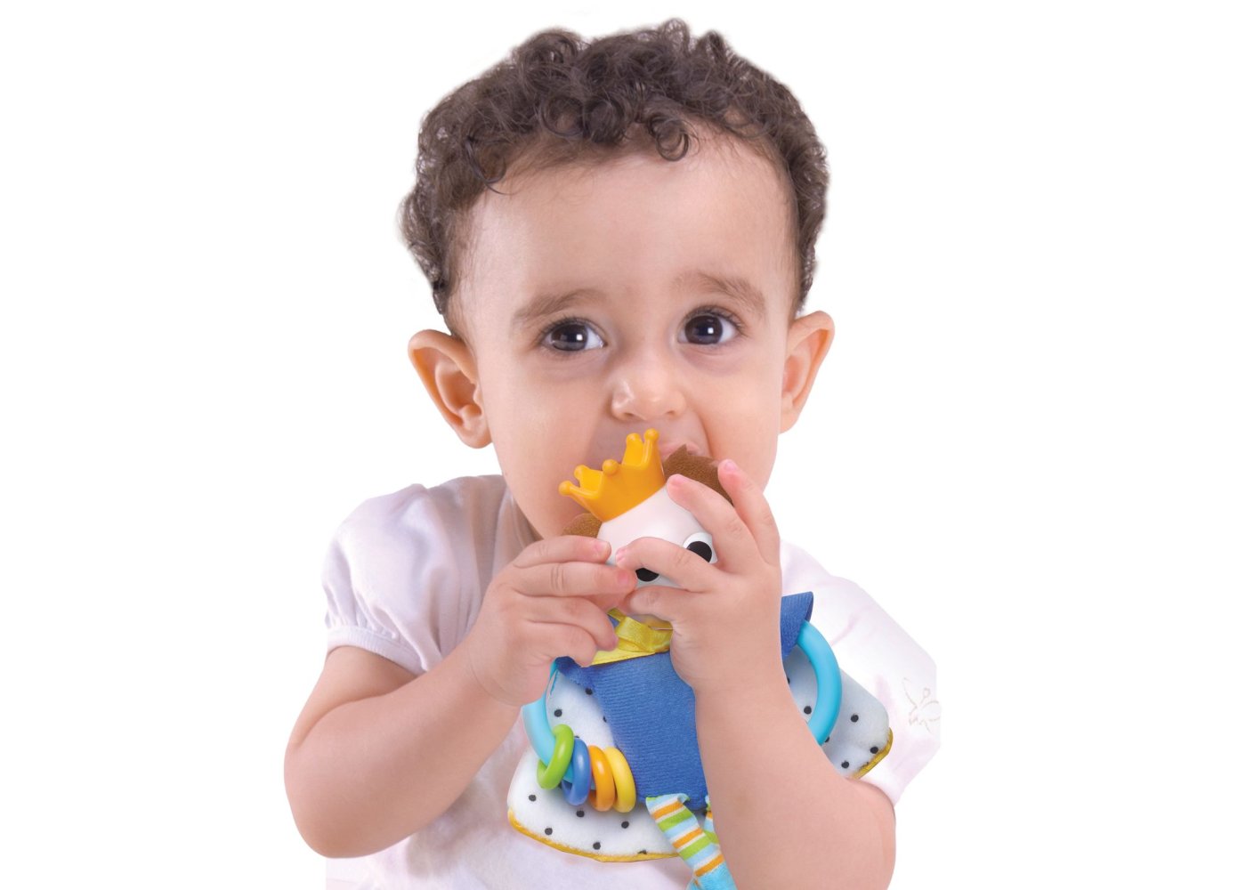 Både prins og prinsesse er udstyret med ringe, og kan bruges indendørs på kravlegården eller sættes fast på klap- og barnevogn, når I skal på farten.