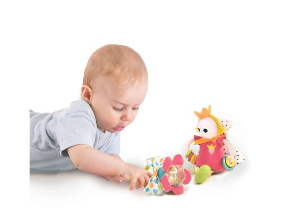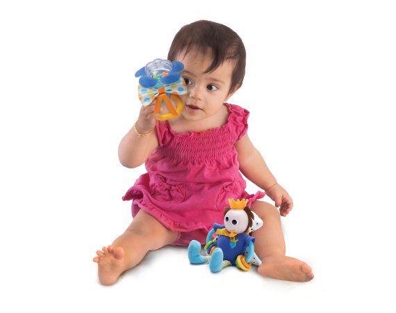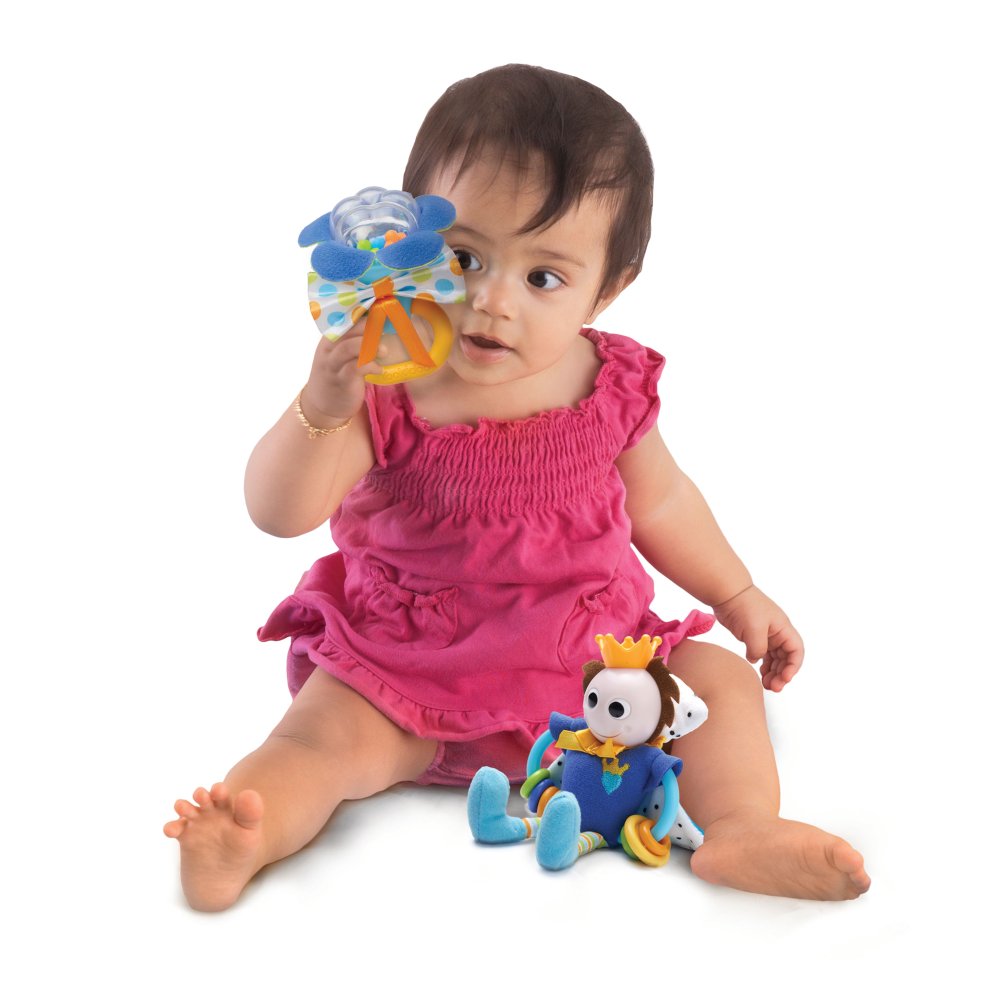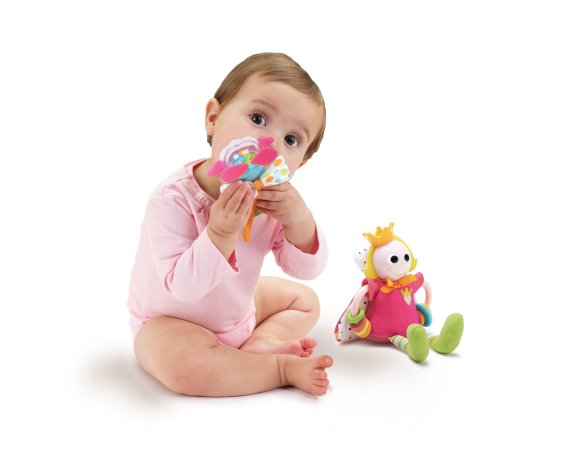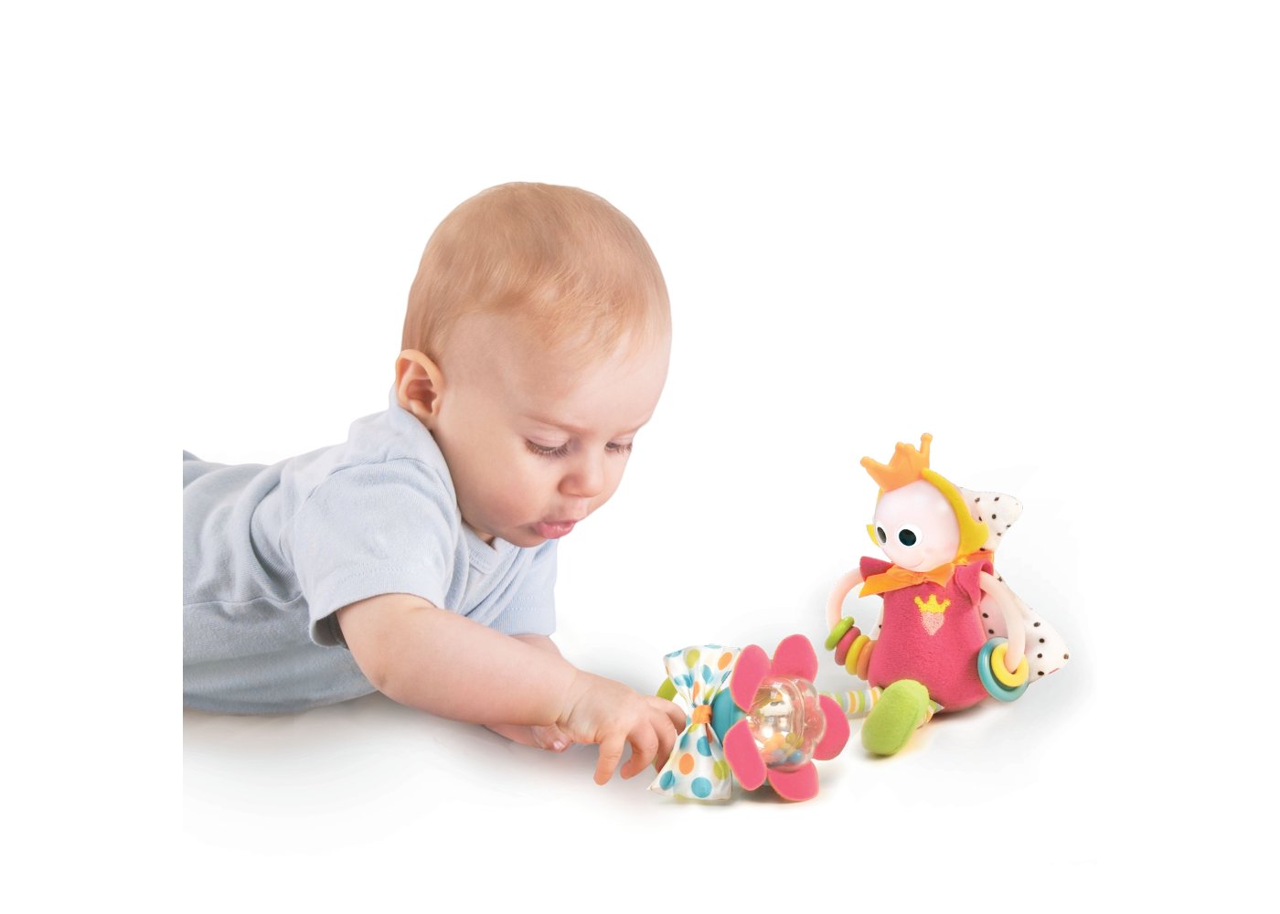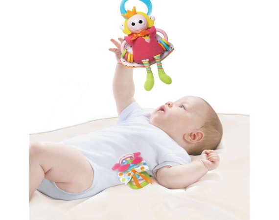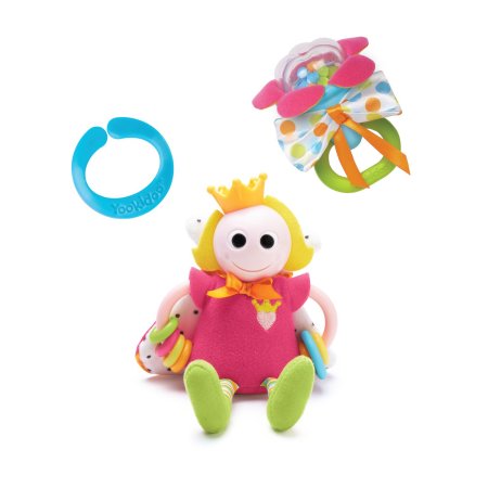 Både prins og prinsesse er udstyret med ringe, og kan bruges indendørs på kravlegården eller sættes fast på klap- og barnevogn, når I skal på farten.
