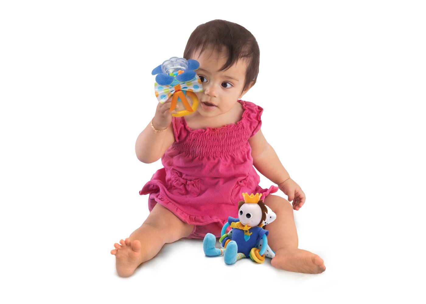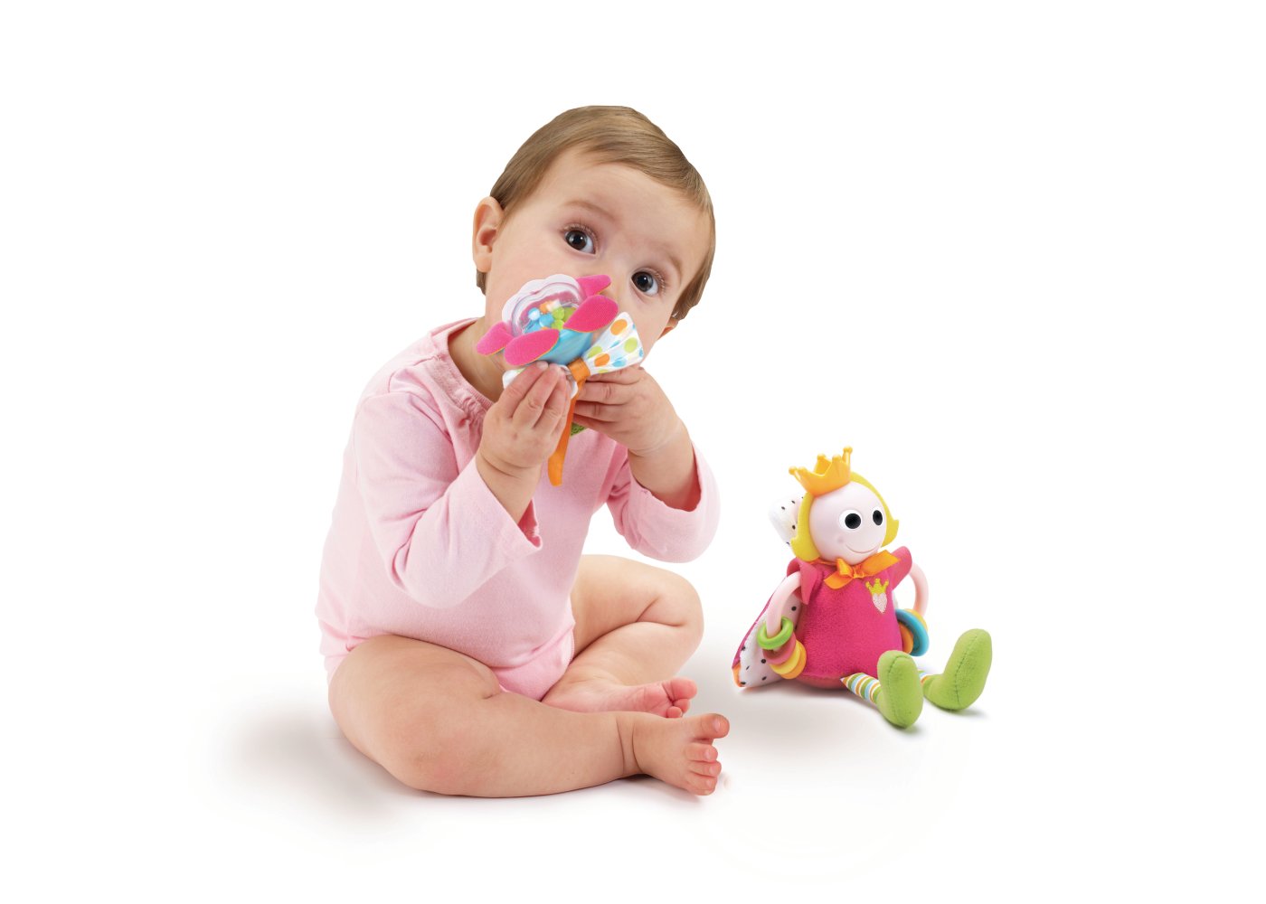 Dukkerne er udstyret med bløde og knitrende tekstiler, en krone til at bide i og bevægelige ringe. Ranglerne har bløde tekstiler, raslende perler og en fin bidering til ømme små gummer.