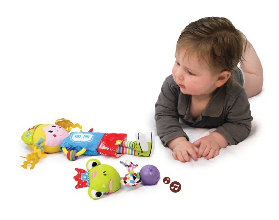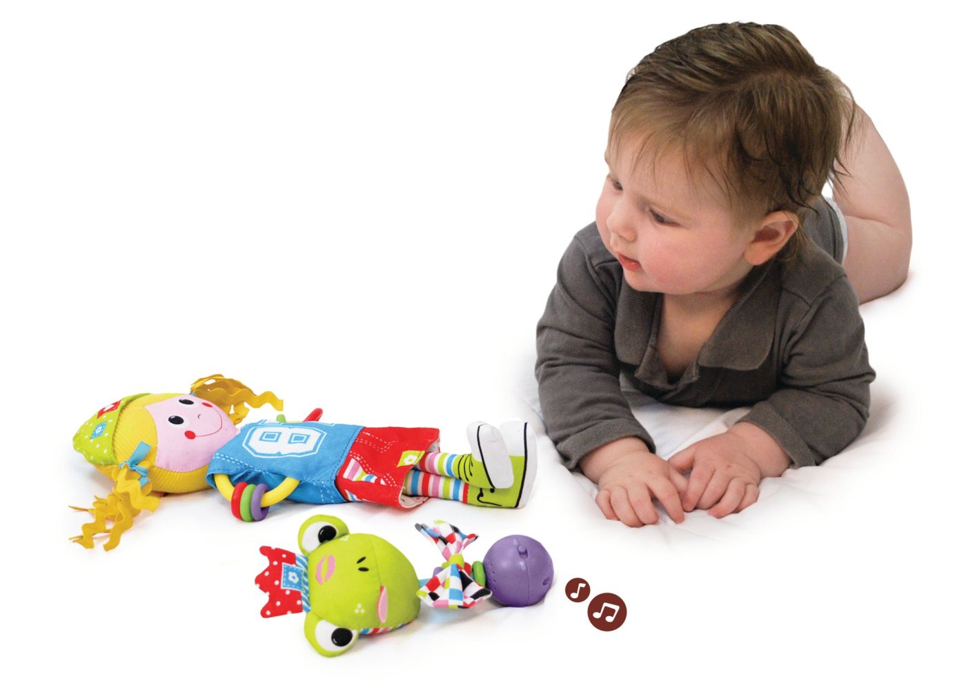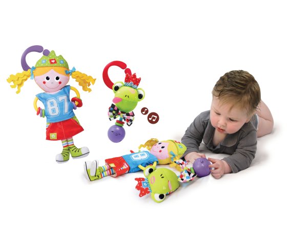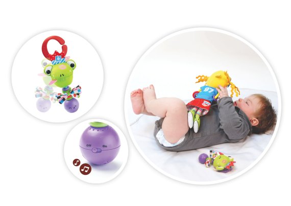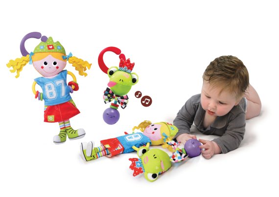 Prinsessen er designet i glade farver, forskellige tekstiler med forskellige berøringsflader og perleringe, der kan flyttes på. Prins frø har en lækker blød butterfly og raslende perler, der er dejlig og sjov at rasle med.