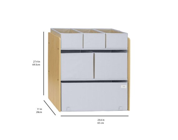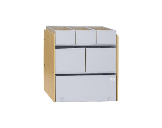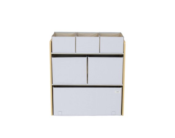 Multi-møblet består af seks opbevaringskasser i forskellige størrelser til at opbevare og organisere dit barns bøger, legetøj og tegninger. Designet er børnehøjde, hvilket giver dit barn mulighed for tydeligt at se og vælge mellem yndlingslegetøjet. Og en gevinst for dig er, at du med sindsro kan bede dit barn selv rydde op, når de er færdige med at lege. Vi kalder det leg og læring på en gang!